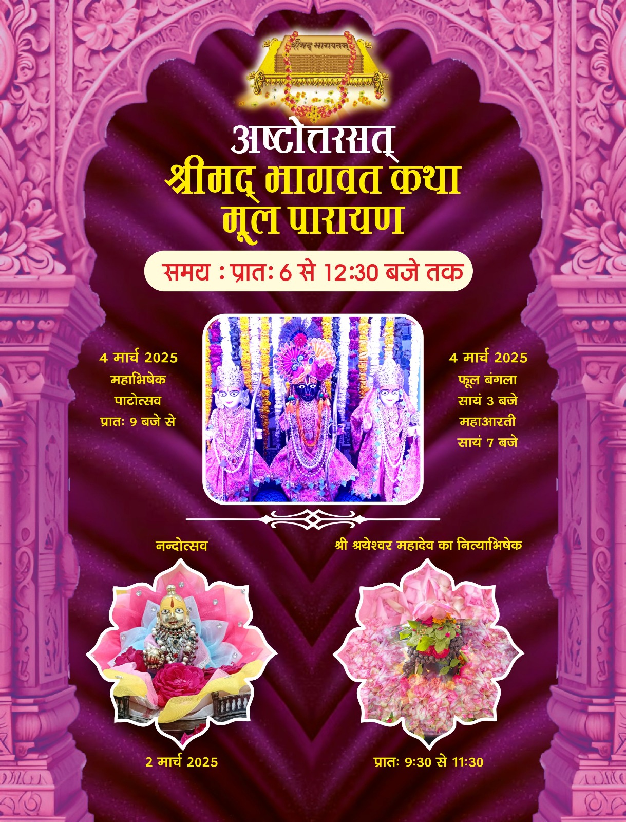Maharaj Ji established the Shri Krishna Shrayashray Ashram, which provides services such as cow care, support for Brahmins and sages, and free lodging and meals for guests. Although donations are respectfully accepted, they are not required.